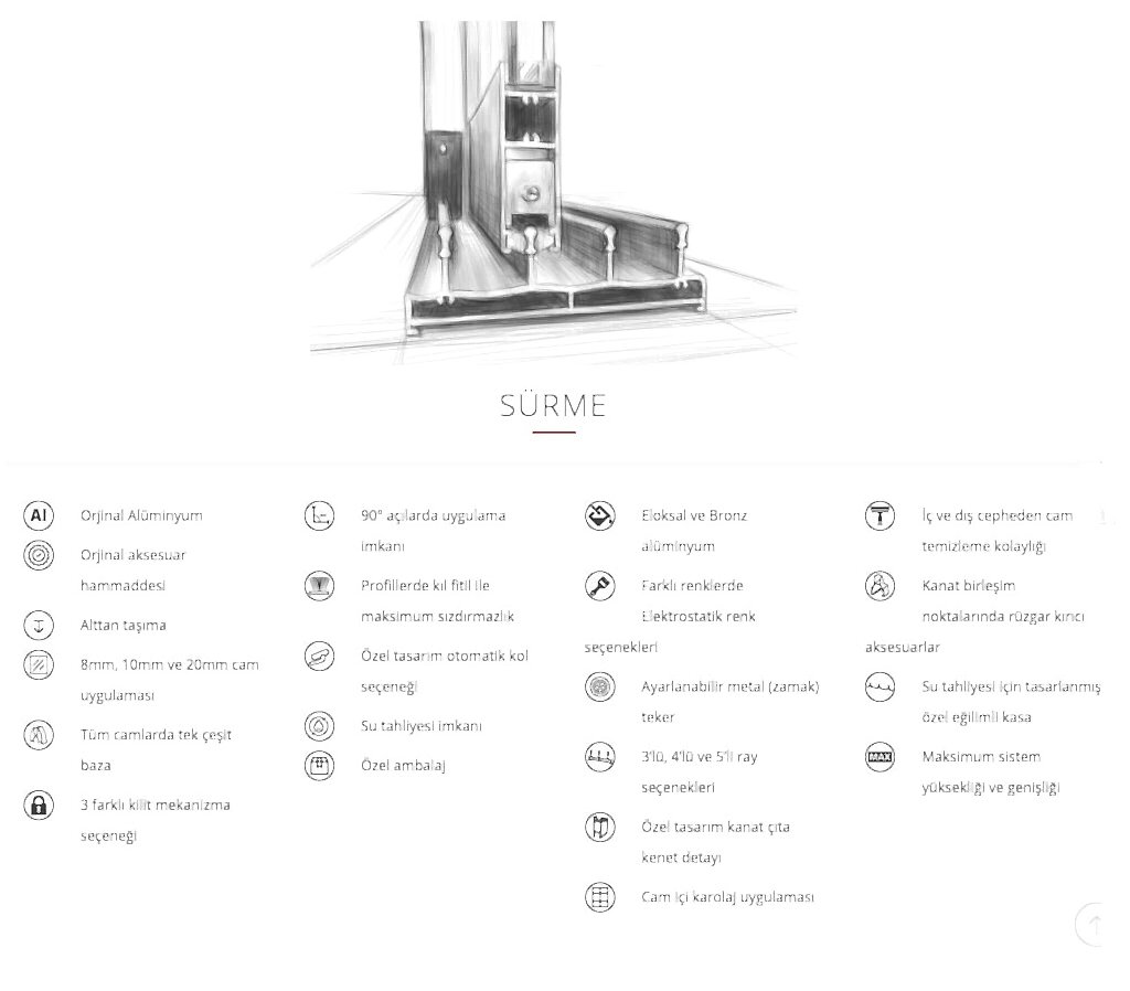 Yan ve üst profillerde iç ve dış taraftan kıl fitillerle ile donatılmıştır